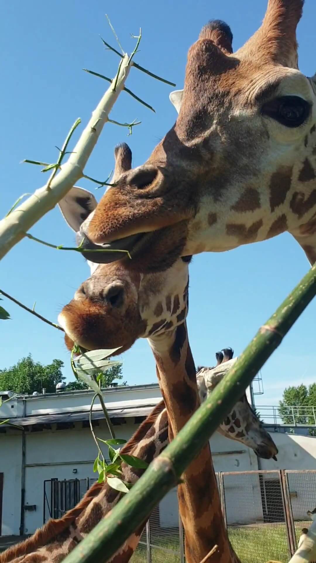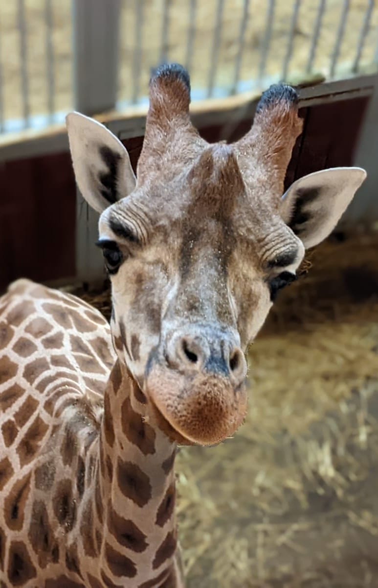 Żyrafy mają sympatyczne pyszczki i powłóczyste spojrzenia spod długich rzęs. Na ich głowach wyrasta kilka charakterystycznych wyrostków kostnych, które samcom służą niekiedy do walk.’